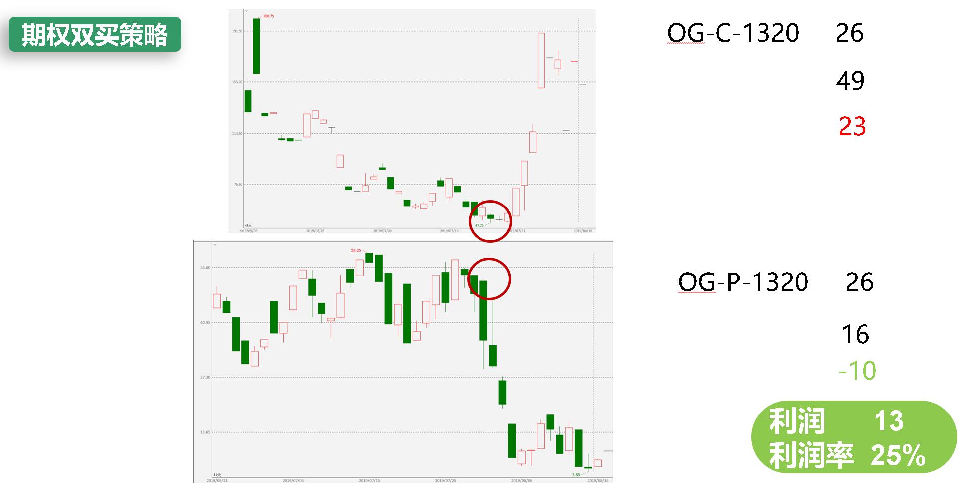 上週的黃金波動確實讓我意外,原以爲貿易消息出來,就該有一個方向性的突破(突破了就是一波行情),可是貿易協議雖然落地,但黃金價格居然不跌確實有點難處理。好在總體價格形態沒變化,時間窗口仍處於需要突破階段,因此等待仍是最好的選擇,或者直接用雙買期權策略,我週末測算了下,買入黃金1500的看漲期權成本是2300美元,買入黃金1450看跌期權的成本是1100美元,總成本才3400美金,如果1-2月份價格大幅波動至我的預期(1350或1650),整個期權組合仍有10000美元的收益,算下來差不多300%的利潤。好處是風險可知且無需判斷方向。上一張講課時的例子圖。