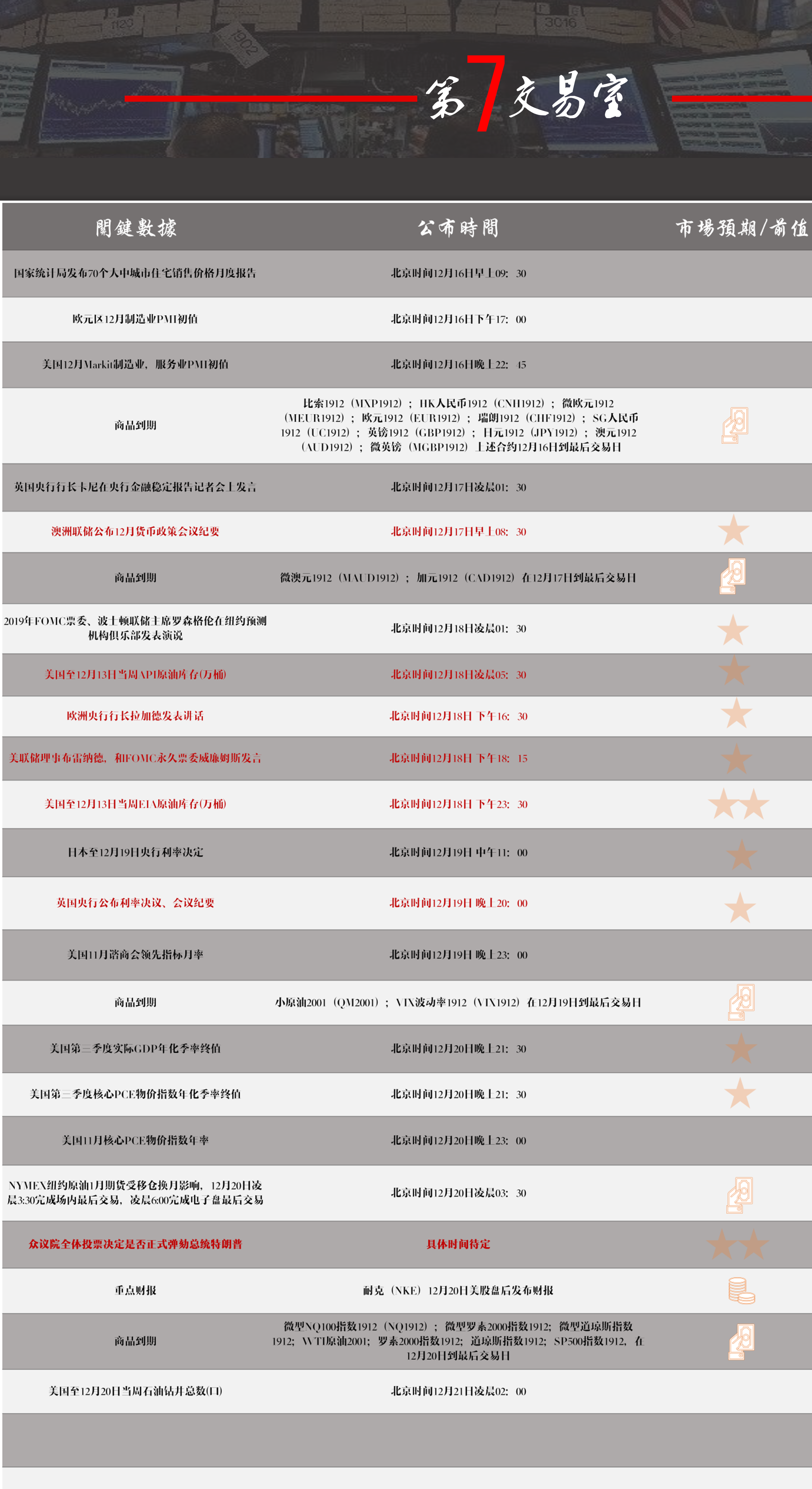 因爲此前的利好悉數兌現,本週英國央行也將宣佈最新的利率決議,市場普遍預期利率將保持不變,英鎊高位回落的壓力很大,而如果英央行超預期降息,英鎊回落的空間將會更大。具體時間,可參照日曆圖中標紅數據。