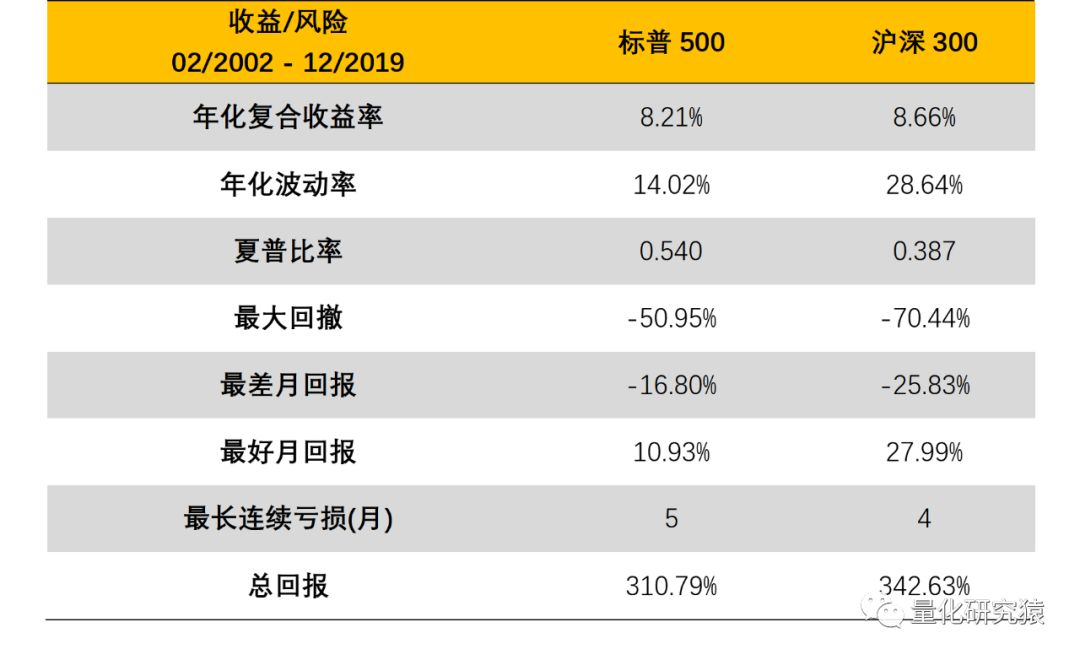 談起A股和美股,許多投資者的第一反應就是吐槽“看看別人看看你,看看隔壁大老美”,那麼事實真的如此嗎?拋開外匯因素,我們以人民幣計價的滬深300指數和美元計價的標普500指數舉例,分別衡量A股和美股的走勢,淨值增長圖如下(由於滬深300指數數據從2002年02月纔開始):
