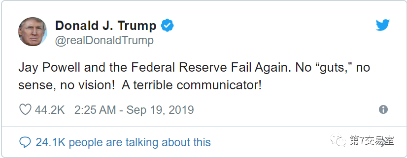 這個結果顯然是早就呼籲大幅降息和儘快開始量化寬鬆的特朗普不想看到的,在推特里,特又開啓了炮轟模式。