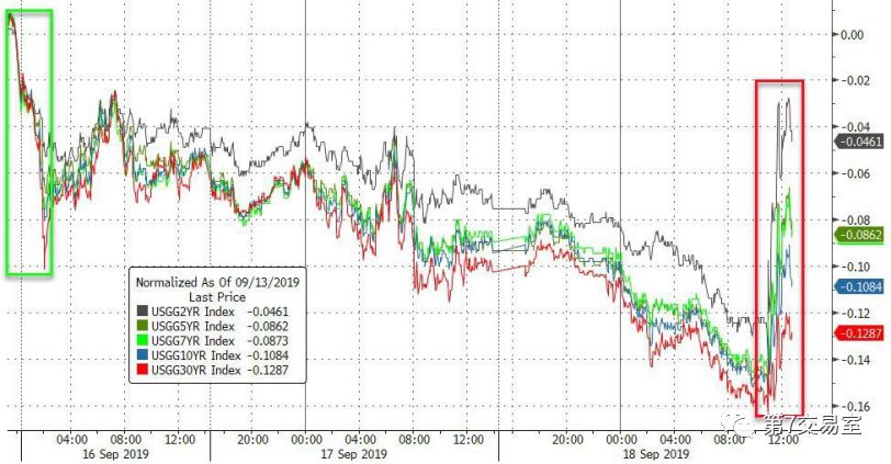 你看,鮑威爾的一句話,整個美債市場的利率指數都出現了觸底回升。