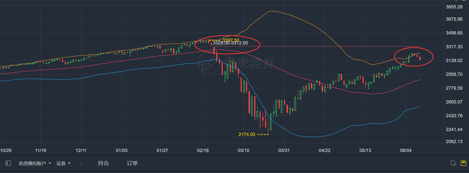 周線z-croe的圖就不再畫了,今晚的行情,咱們要特別小心的對待就是了,別一味的死多,不排除是今天凌晨鮑威爾的發言沒有出現超預期的鴿派論調造成的。
