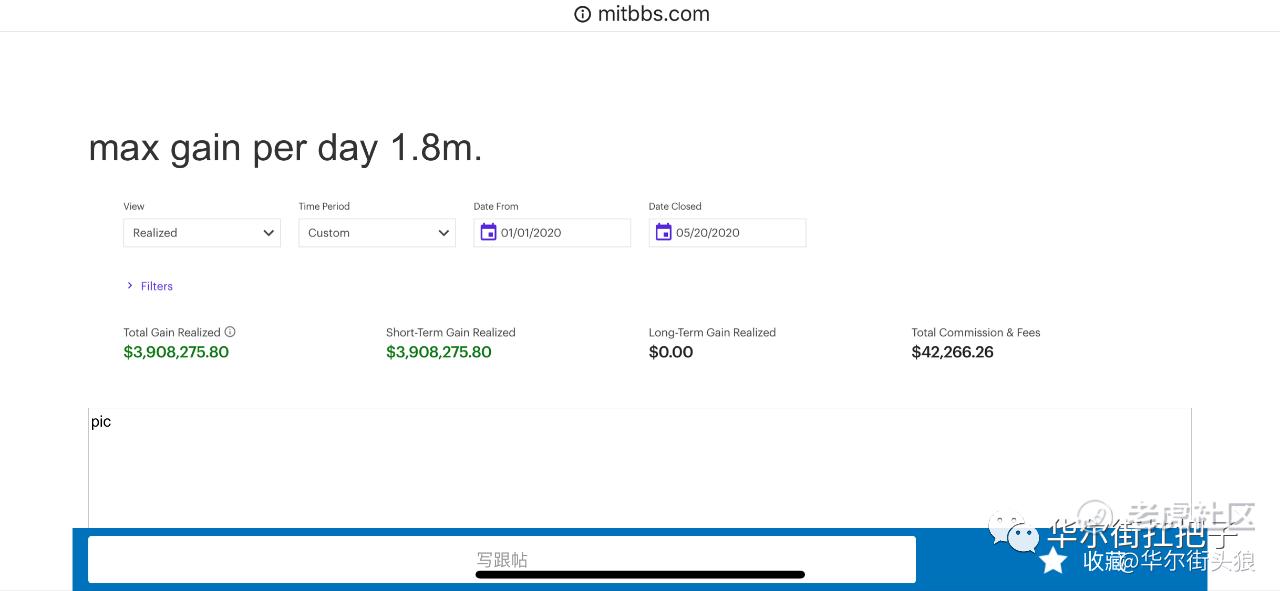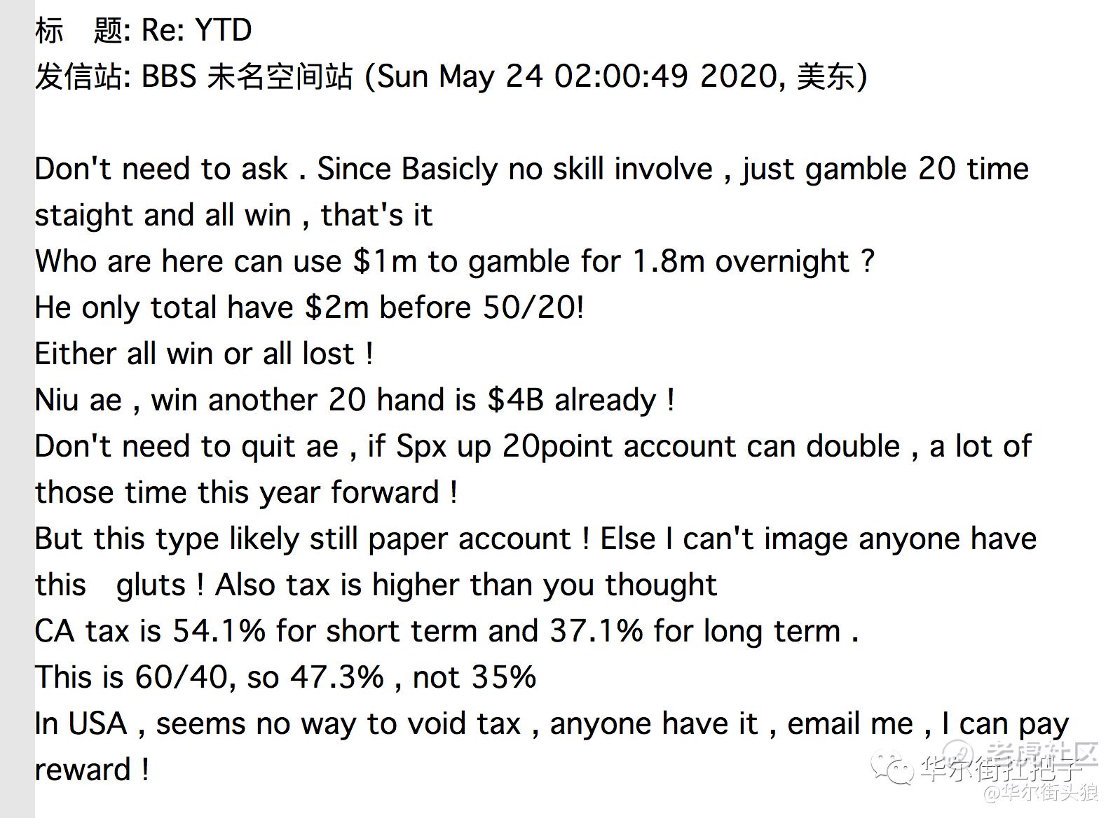 樓主發了一個帖子,標題是 YTD>4M, 翻譯成人話,就是今年到目前的收益超過400萬美元。