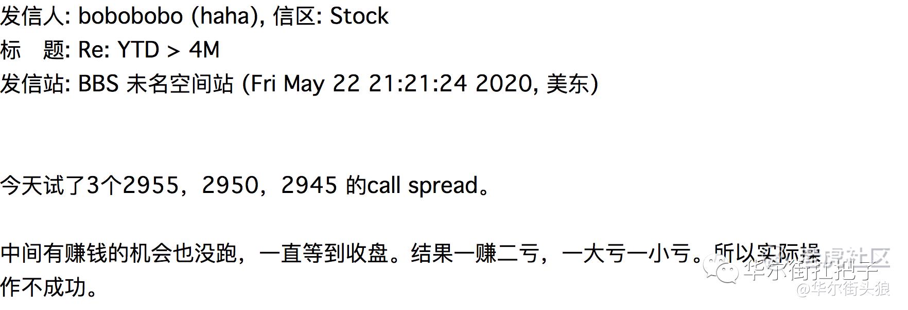另有牛人, 直接拿這個策略實踐了一把。單日購買了3種call spread,最終還是1賺2虧.這還是有兩個都看準了點位的,可見要想真用這個策略賺錢,是很難的,重要的個人操作,運氣,和當日大盤的走勢。