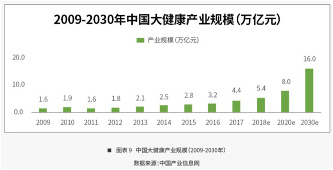 從國家定調來看,大健康產業的定位是面向十三億國民福祉、推動人民身體健康水平提升的核心產業,也是關係到中國經濟轉型升級、爲中國社會經濟提供發展新動能的戰略新興產業。