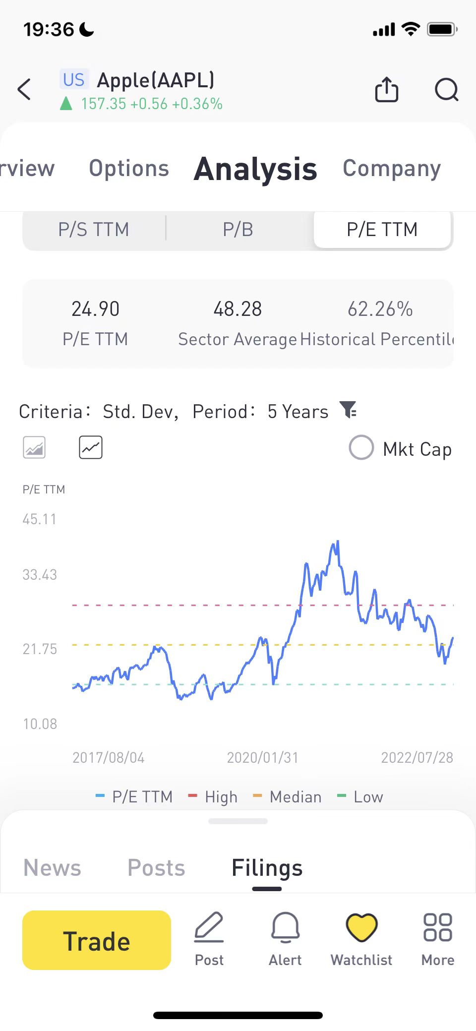 And we can find its P/E on Tiger app: click the ticker → enter its interface → click the "Analysis" → find "Valuation Anlysis"
