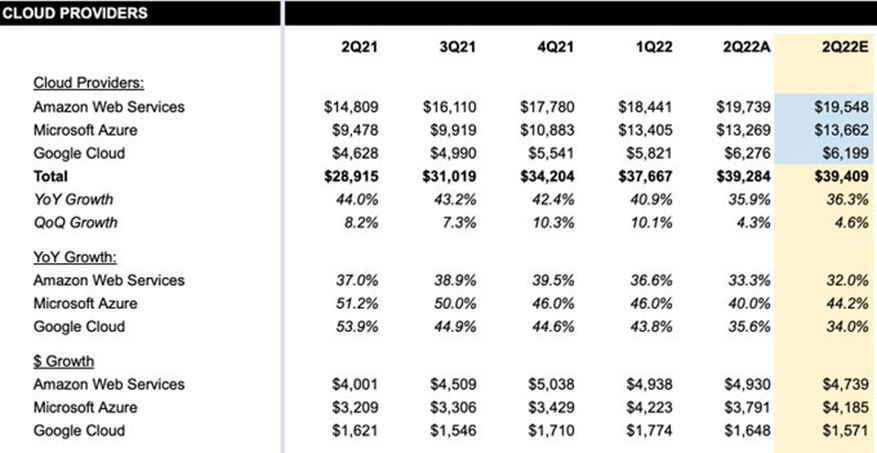 Second, $Alphabet(GOOG)$ and Microsoft flagged slowdowns in their cloud-computing units. Both companies trail AWS, which controls an estimated 39% market share.