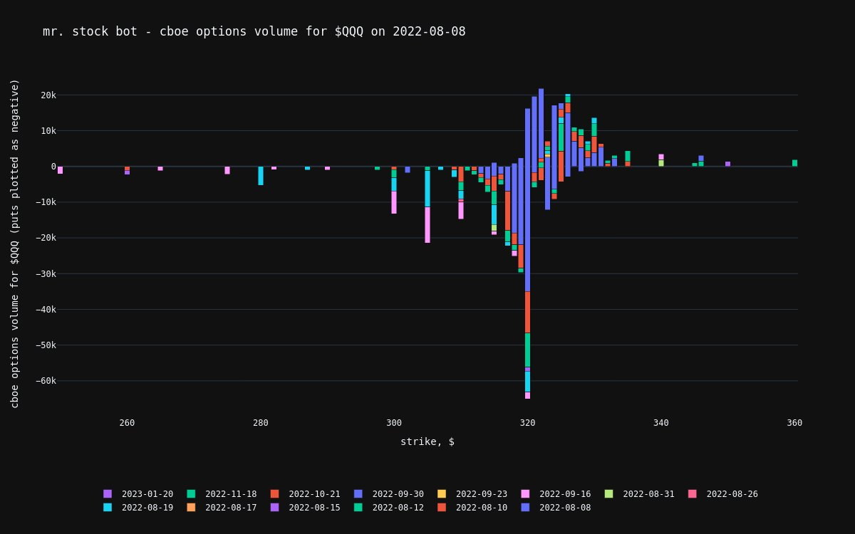 Most traded: 2022-08-08 $322.0C (21.8k)