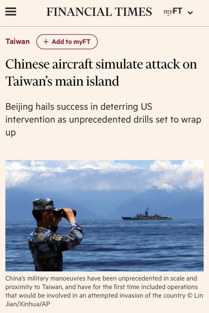 Maybe I’m missing something, but these simulations seem like an intelligence goldmine for the U.S., Taiwan, and allies. This whole impetuous outburst seems strategically very disadvantageous to China. https://t.co/W4eF7mPtav