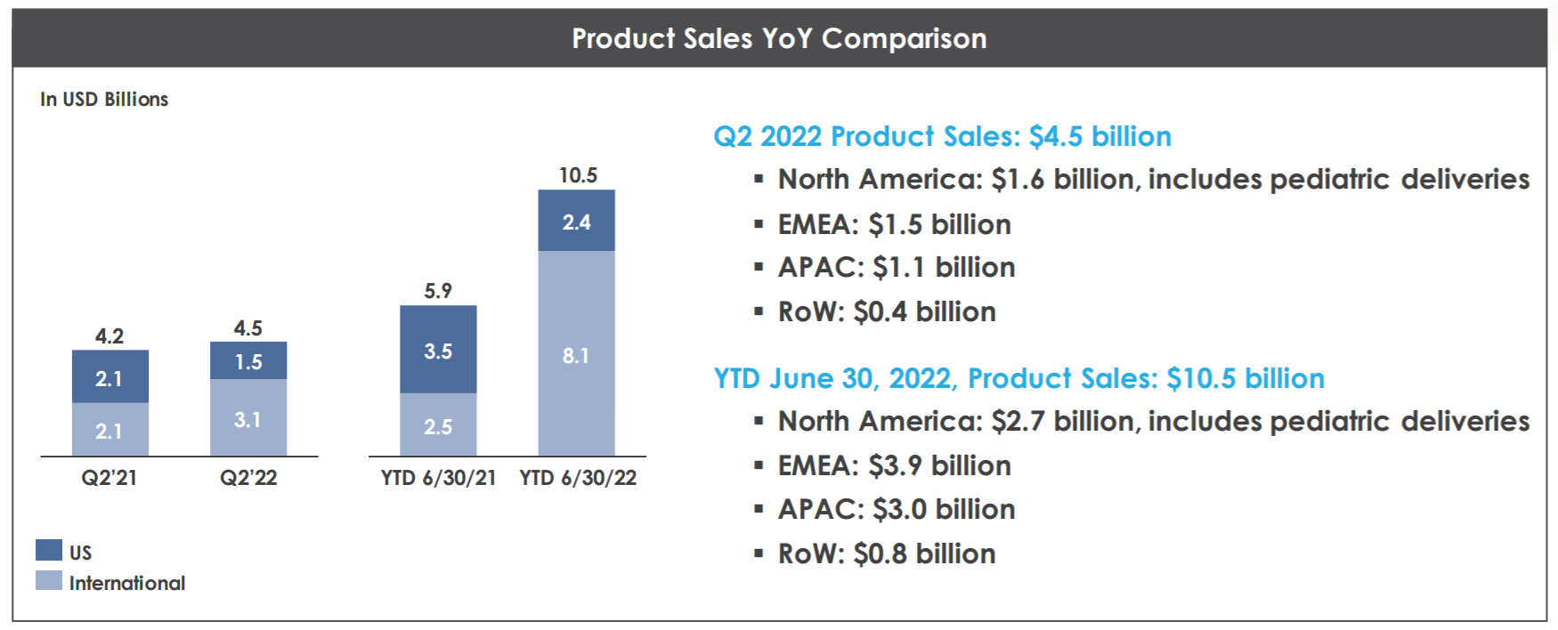 Moderna’s APAs for product sales for which we expect to make delivery in 2022 are approximately $21 billion. This includes the recently announced agreement with the U.S. government for 70 million doses (option for 4 million pediatric doses has been exercised) and an adjustment for doses that remain unallocated by COVAX due to lack of demand. Moderna anticipates that for sales in the second half, sales will be greater in the fourth quarter than the third quarter, driven by the timing for approval of our updated COVID-19 vaccines and the related manufacturing ramp-up of new products.
