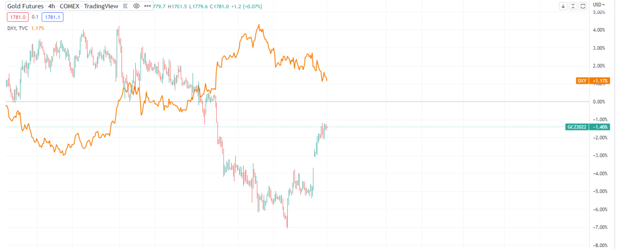 However, it is obvious that there is a very clear negative correlation between them on the hourly chart before and after the Fed's decision.