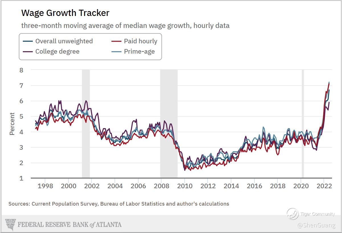 The Federal Reserve System also calculates the 3-month rolling wage growth through population surveys. The latest survey shows that the cost of employing college degree holders, hourly wage earners and in the prime ages are unified in trending upwards, just as with the unified average. This confirms that strong inflationary pressures haven't abated yet and likely won't abate any time soon.