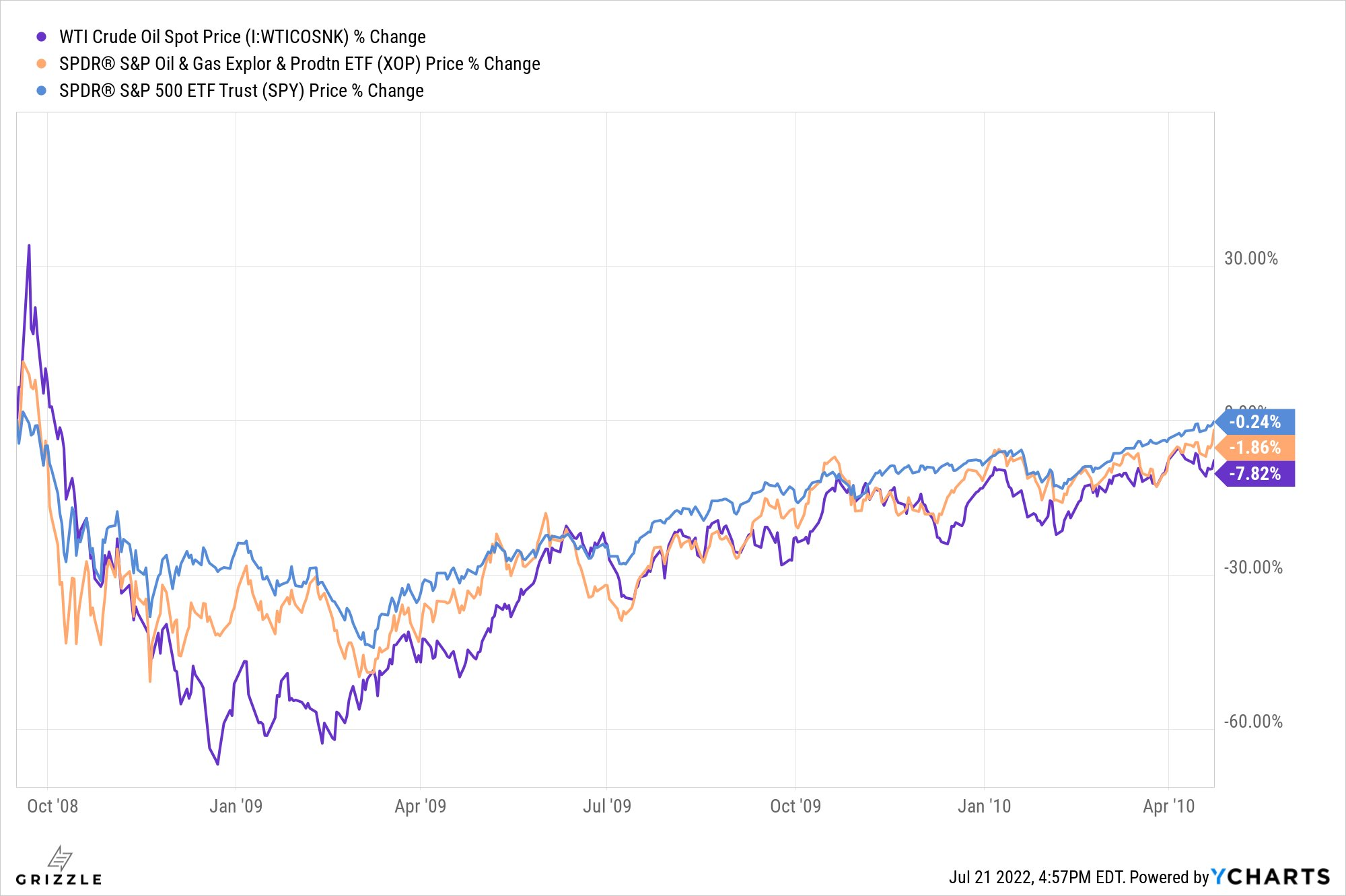 6. Even though oil stocks kept crashing in 08' and early 09' energy investors who bought after the first selloff kept pace with the S&P the entire time!