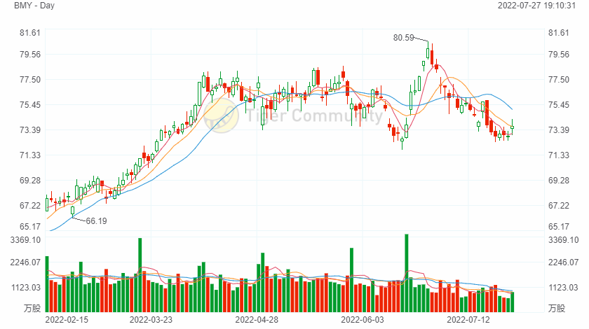 2. Bristol Myers Squibb (NYSE: BMY) announced on July 22nd that the Committee for Medicinal Products for Human Use (CHMP) of the European Medicines Agency (EMA) has recommended approval of the fixed-dose combination of nivolumab and relatlimab for the first-line treatment of advanced (unresectable or metastatic) melanoma in adults and adolescents 12 years of age and older with tumor cell PD-L1 expression < 1%. The European Commission (EC), which has the authority to approve medicines for the European Union (EU), will now review the CHMP opinion.