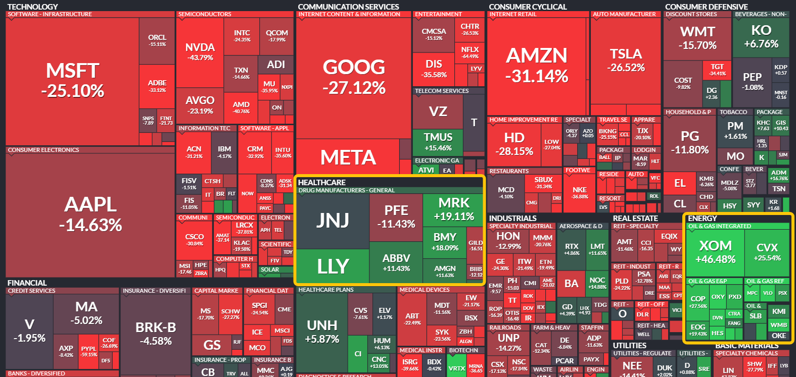 The best sector this year is of course the energy sector, which has benefited from a sharp rise in oil prices. Then is military industry, which obviously benefited from the Russian-Ukrainian war.