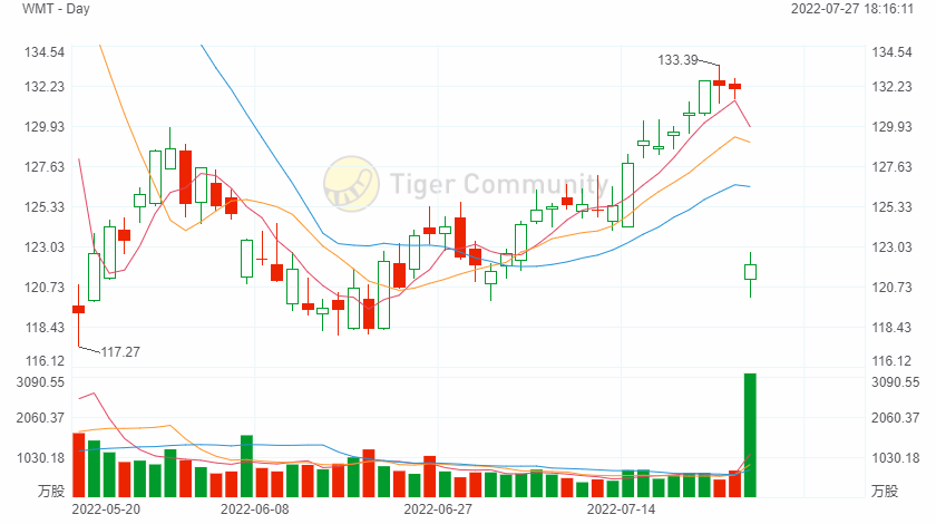 Walmart released report that due to the impact of inflation, its Q2 earnings would drop by 13-14%, and its full-year earnings would drop by 11-13%. Walmart stock fell sharply after the news.
