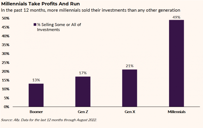 Intriguing statistics. Seems just about every millennial sold some or all of their investments. Could have to do with life stages, but hard to guess what is specifically driving this. The other key thing that sticks out in this chart is that aside from millennials, everyone else has held tight. That gels withmy previous observationsabout the difference between very bearish surveys vs relatively minor movement in equity allocations and margin positions.