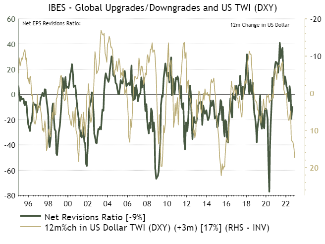 Strong dollar = tighter financial conditions (= recession = earnings go down). Hard to escape the reality ofmultiple mounting headwinds, and the inevitable negative impact on earnings.