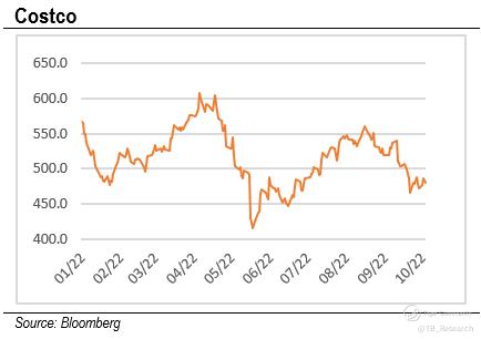 $Costco(COST)$ , a leader in the membership warehouse retail, saw September comparable sales growth up +8.6% despite the challenging retail landscape. This is a testament to its positive business model which focuses on selling in bulk at low prices, its Kirkland house brand and its famous $1.50 hotdogs to attract customers to drive turnover. Amid the ongoing inflationary problem that has seen consumer discretionary companies experiencing challenges, Costco has benefited from consumers focusing on “more bang for the buck” from bulk purchases of necessities and groceries from the warehouse retailer. Costco has maintained stable membership growth, keeping its basic membership fees flat at $60 per year since June 2017; a strategy which has tapped on the recurring loyalty of its customer base and a major contributor to its net income. Costco’s trades at 33x FY23 consensus price to earnings multiples which is at the premium to its competition such as BJ’s Wholesale or Kroger.