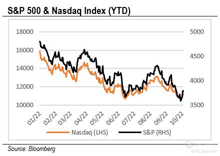 US markets were buoyed over the week by optimism as yields and the US dollar corrected from the year’s highs. $Cboe Volatility Index(VIX)$ Volatility index (VIX), a gauge of market fear, also contracted after hitting the highs of 32.6 in Sep, leading to a bear market rally this week. $S&P 500(.SPX)$ saw gains of 1.7% while $NASDAQ(.IXIC)$ rose 0.9%. US mid-term elections is just a month away, volatilities may rise into the elections amid polls showing the likelihood of a gridlock government.