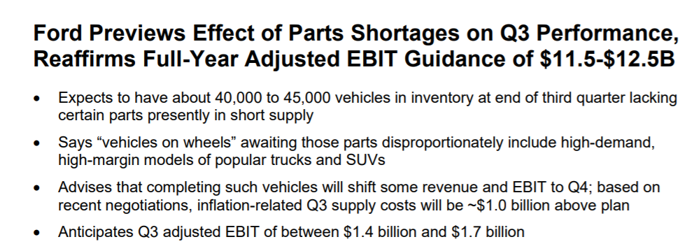 In fact, Ford's supply chain management has done a good job since the pandemic, its gross profit margin of 22Q2 reached the highest 14% in recent years. Therefore, the current shortage of parts is indeed an important blow to its performance.