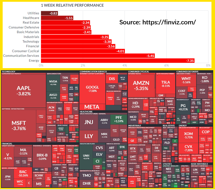 Last week, All the sectors fell , with the energy sector falling the most, followed by Communication Services and consumer Cyclical, and the Utilities sector fell the least last week.