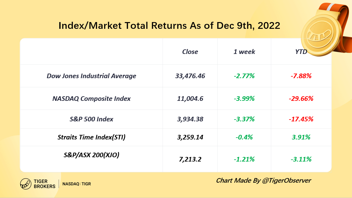 After two positive weeks in a row, the major U.S. stock indexes fell around 3% to 4%. the$DJIA(.DJI)$ fell 2.77%, the $S&P 500(.SPX)$ fell 3.37%, and the $NASDAQ(.IXIC)$ fell 3.99%.
