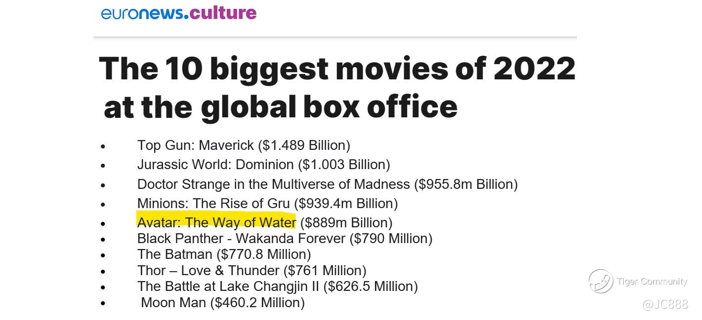 Avatar II : The Way of Water at #5 just 2 weeks after release !