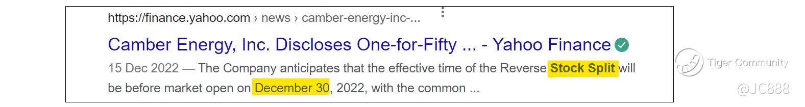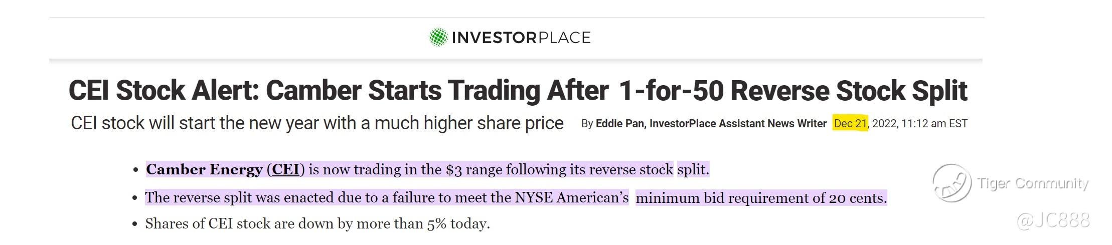 - Then the Bomb dropped on 15 Dec that CEI will be doing a Reverse Split on 30 Dec.