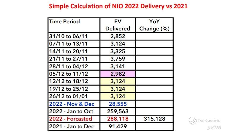 - YoY (2021 vs 2022) NIO's delivery - +315.128%.