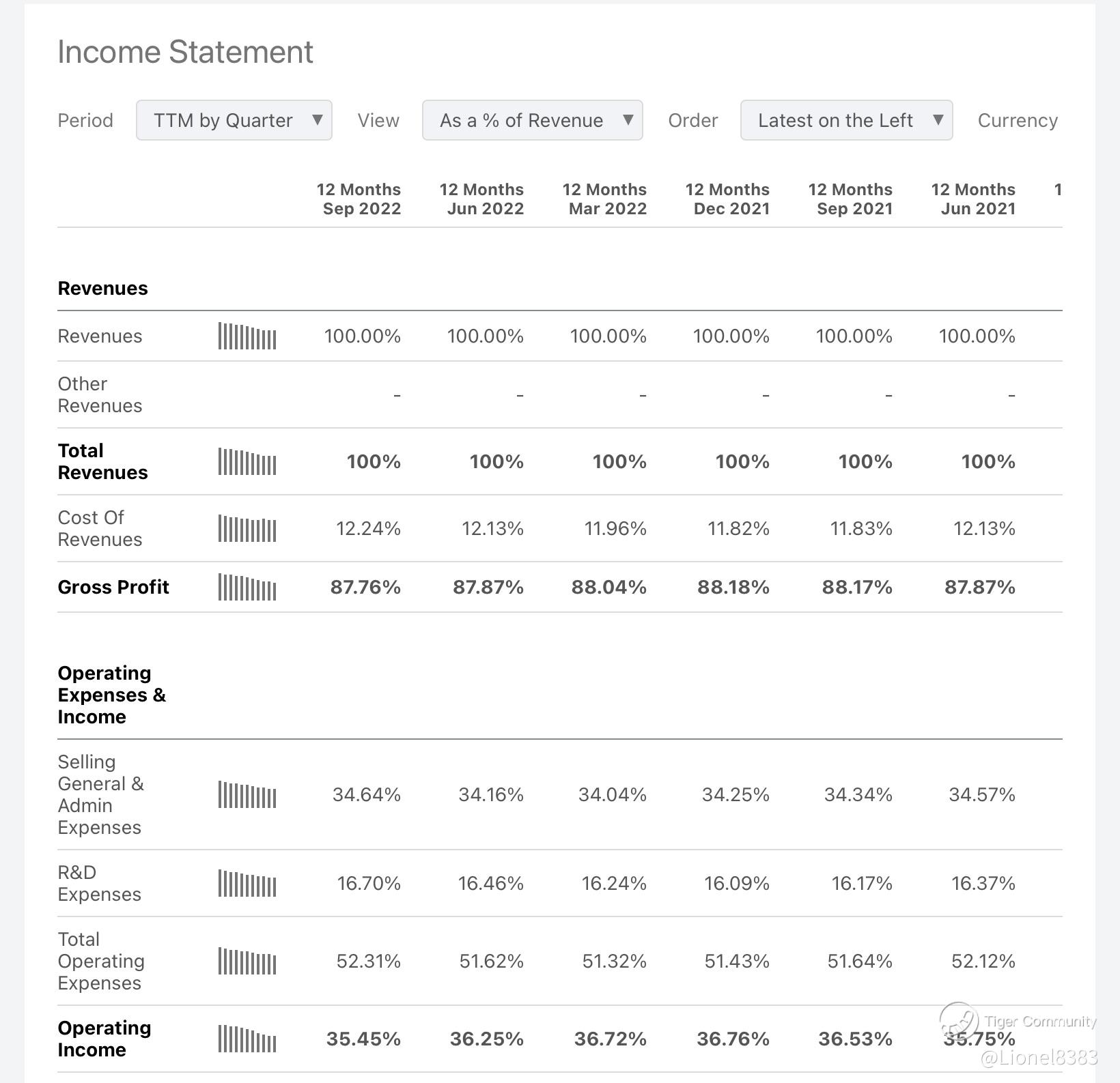 Adobe currently trades at close to a 5-year low in terms of its price to earnings and enterprise value to EBITDA ratios. Any miss in earnings metrics or poor guidance for 2023 will leadthis stock down further as the sell off in technology and software stocks continues, and it will be a nice discount to pick up more shares ofAdobe. Why? Check out their income statement below.