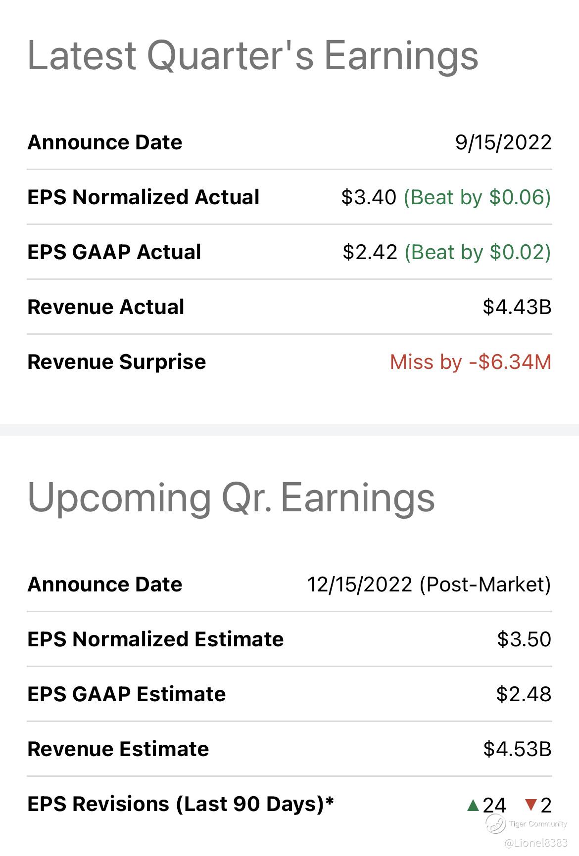 For the quarter ended November 2022, analysts expect earnings per share of $3.50, while revenue expected to come in at $4.53 billion.