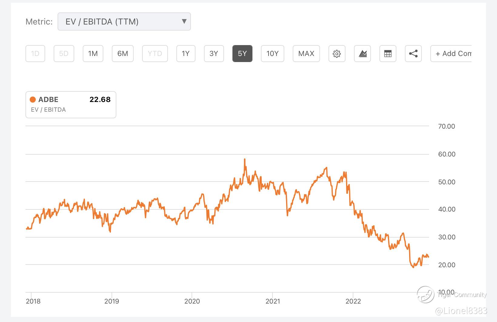 Adobe EV/EBITDA (TTM) 5-years