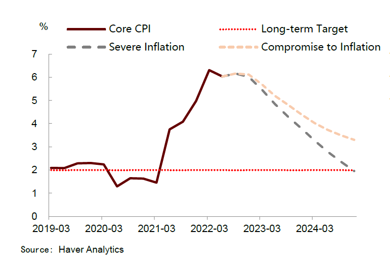 Second, A compromise to Inflation, which means mild interest rate increasing. When the rate reached 4-4.5%, the Fed's will stop anyway. Which means, the Feds allows the inflation stay above 3% for some period, in exchange for less harm to the economy.