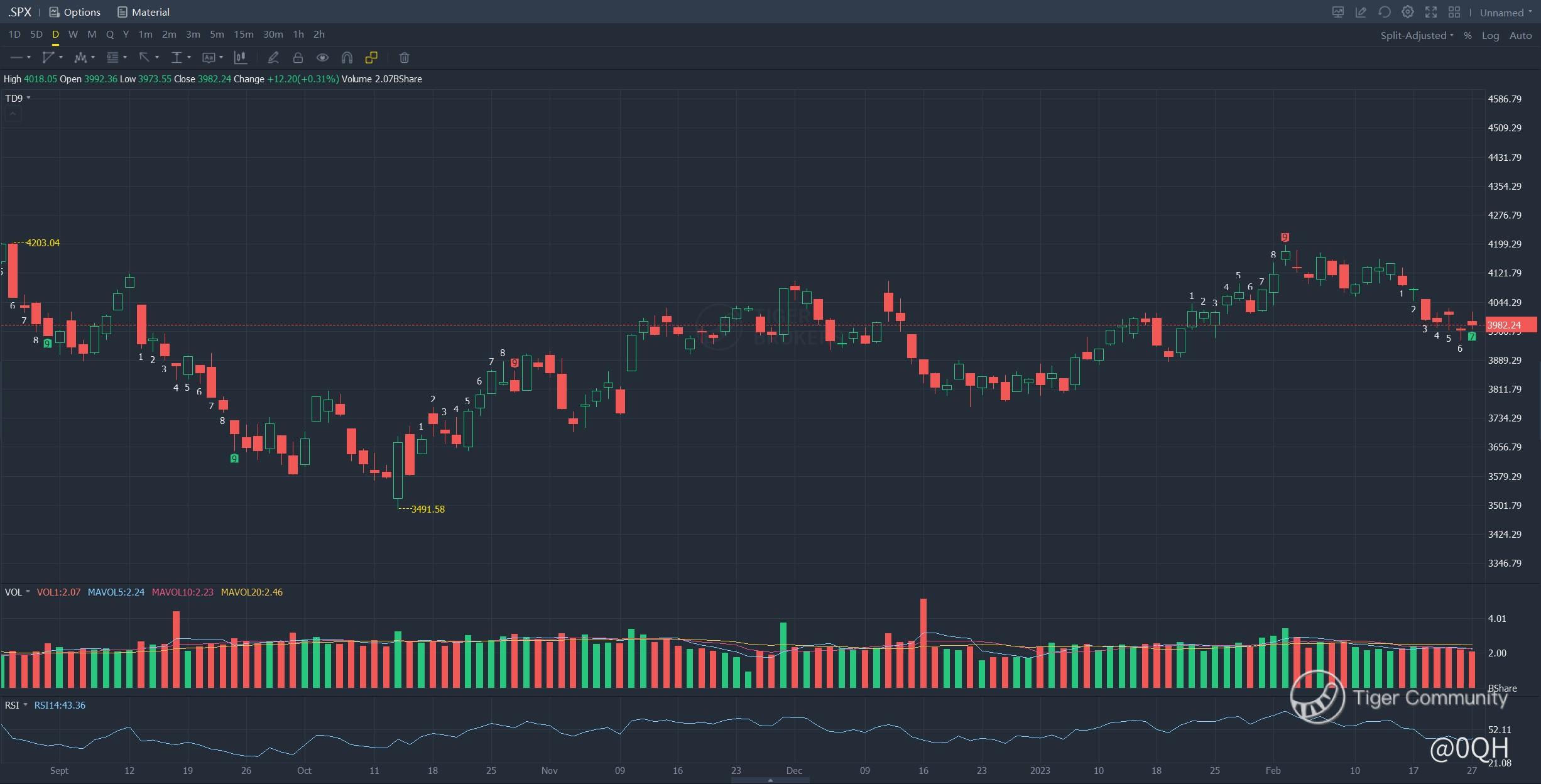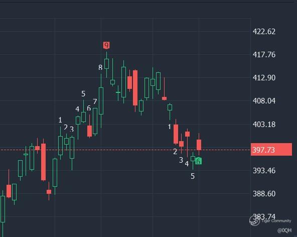 Based on the daily chart for SPY, the next level of support should be around 390. So I will be buying call options $SPY%2020230310%20390.0%20CALL$ $SPY 20230310 390.0 CALL$ expiring next week and take profit at different times depending on whether TD9 is able to form: