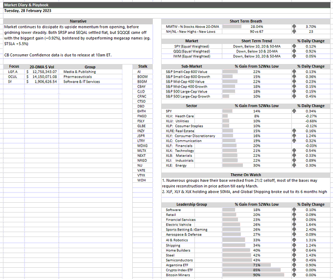 -mkt continues to dissipate upside momentum to grind steadily lower to close. RSP and EQAL$Invesco Russell 1000 Equal Weight ETF(EQAL)$ flat