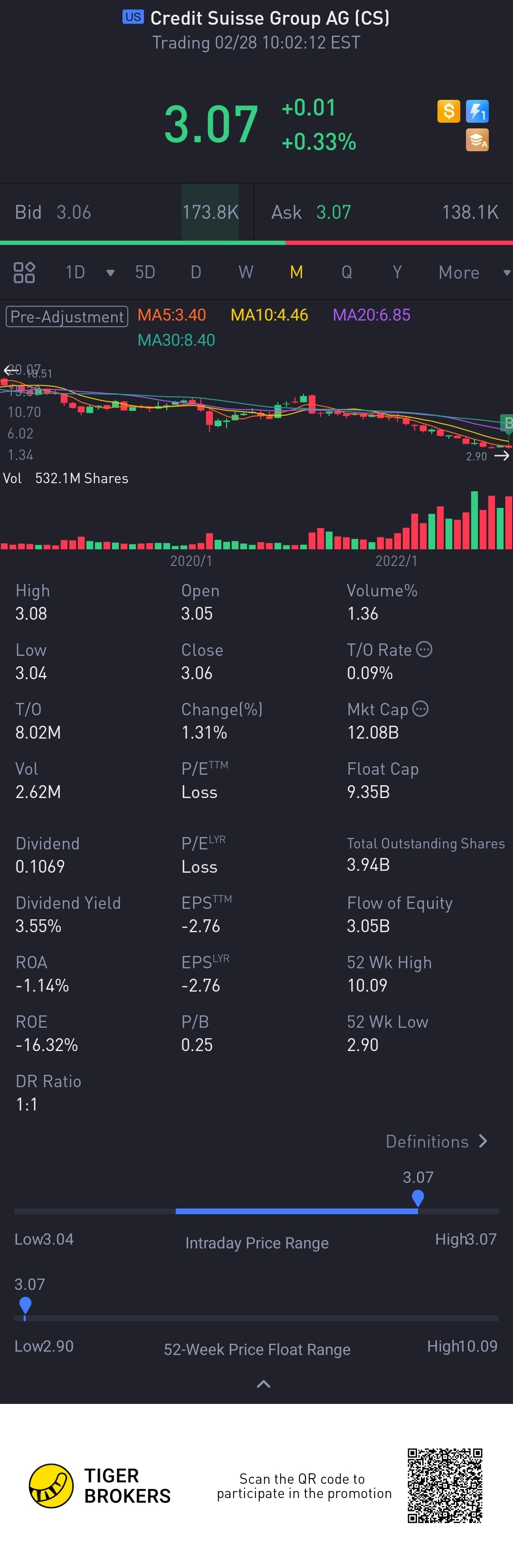$Credit Suisse Group AG(CS)$ Will CS be considered "too big to fail"? Citi was in this position during financial credit crisis and look at Citi current price. Has grown 10x since. What's your thoughts?
