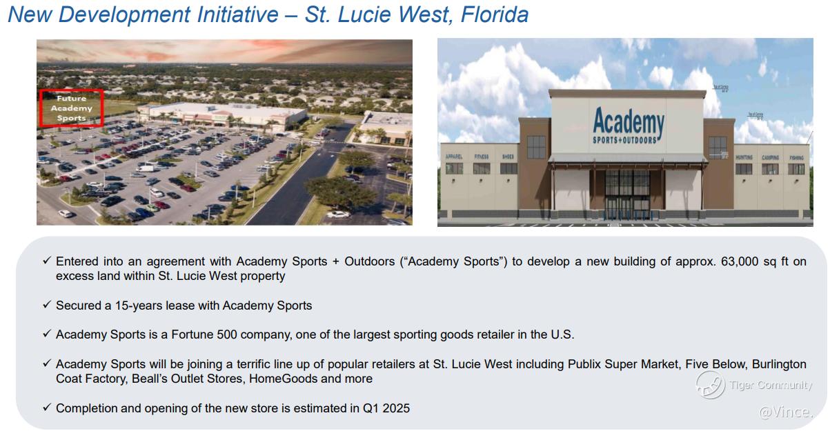 UHREIT would develop a new building on ST. Lucie West excess land for Acedemy Sports and target to complete by Q1 2025.
