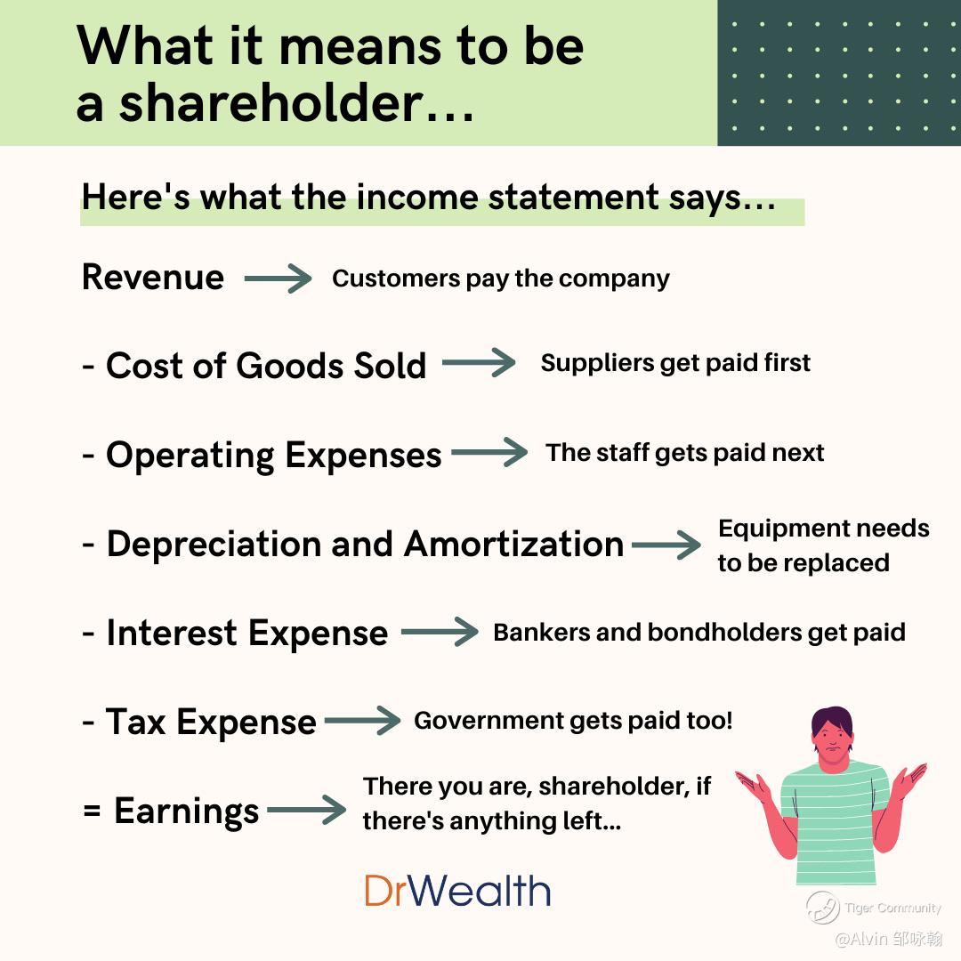 Being a shareholder means taking the highest risk because they get the last dip in EARNINGS after everyone else has been paid. As a result, shareholders should be rewarded with the highest return.