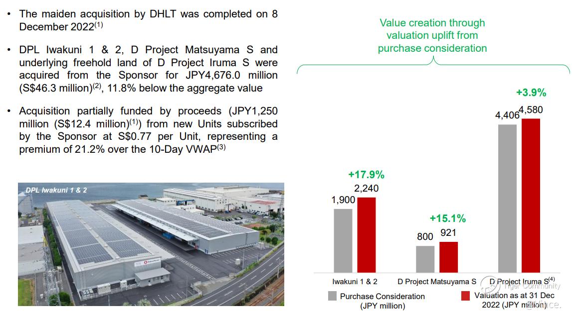 Acquisition of DPL Iwakuni 1 & 2, D Project Matsuyama S and underlying freehold land of D Project Iruma S were completed on 8 Dec 2022.