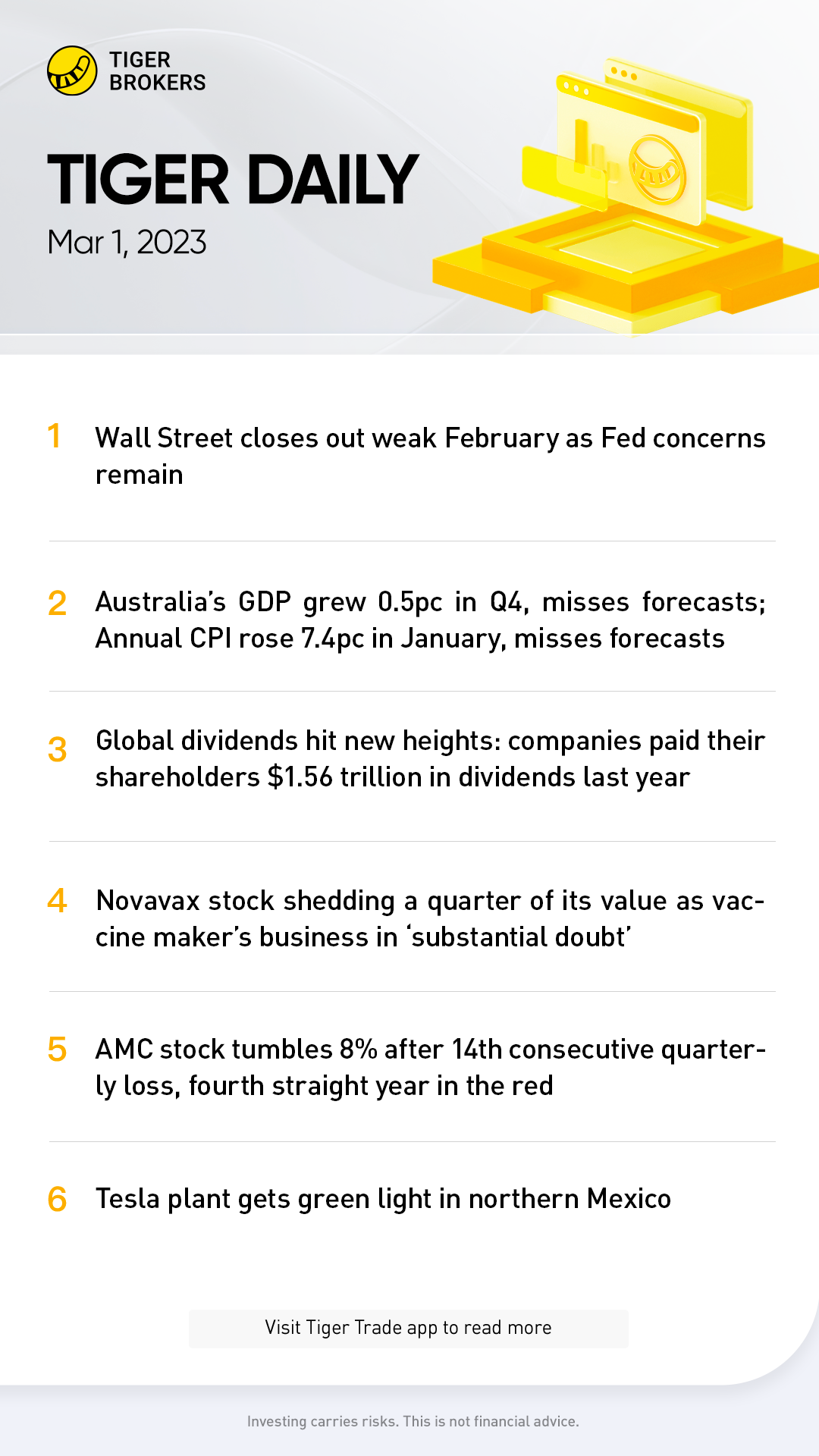 - U.S. stocks closed out February in subdued fashion and each of the three major indexes ended with monthly declines, as investors continue to assess whether interest rates will remain high for an extended period of time.