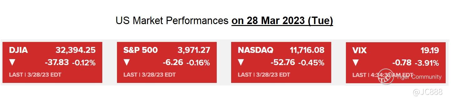 US market closed lower on Tue (28 Mar 2023) as losses in the following sectors led shares lower :