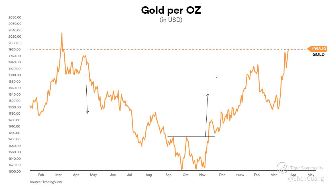 While stocks, U.S. dollar and oil ($WTI Crude Oil - Apr 2023(CL2304)$, $WTI Crude Oil - May 2023(CL2305)$) have been crashing, real estate plummeting, bonds devaluing, gold has responded positively to the uncertainty surrounding the banking crisis. Although markets might be betting prematurely on a rate cut by the Fed by the end of the year, such prospects are positive for gold in the long-term.