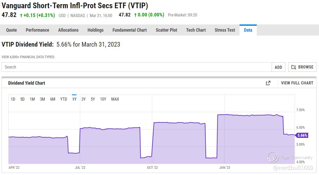 VTIP Dividend Yield is 5.66% for March 31, 2023.