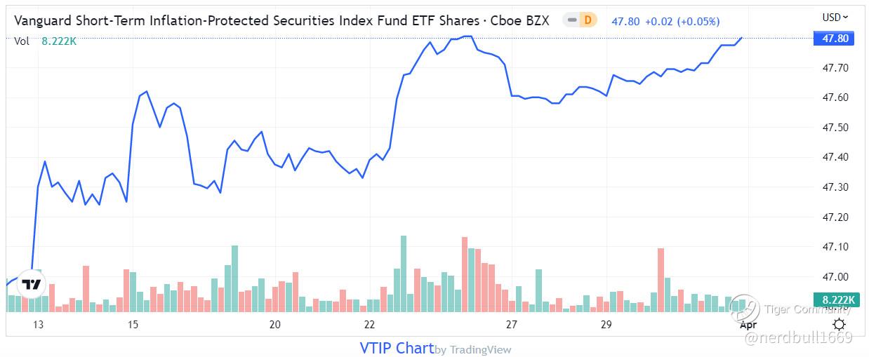 The $Vanguard Short-Term Inflation-Protected Securities Index Fund ETF Shares(VTIP)$ follows the Bloomberg U. S. Treasury TIPS 0-5 year index.