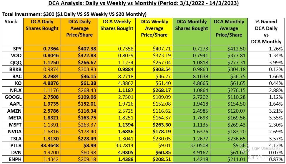(1) For the above chosen stocks, a Daily DCA plan obtained a lower average cost/share for 64.7% of the stocks (11/17)🥳🥳🥳