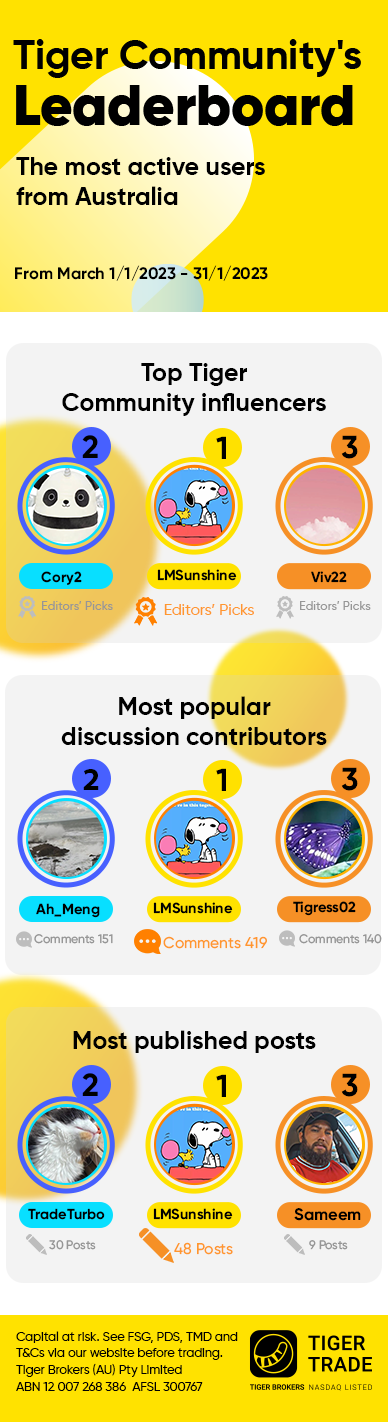 We'd love for you to participate in Tiger Community's Leaderboard. There are prizes to be won for your participation, and the best part is you'll be starting conversations and sharing opinions with other investors like yourself. To be eligible to participate please see the following: