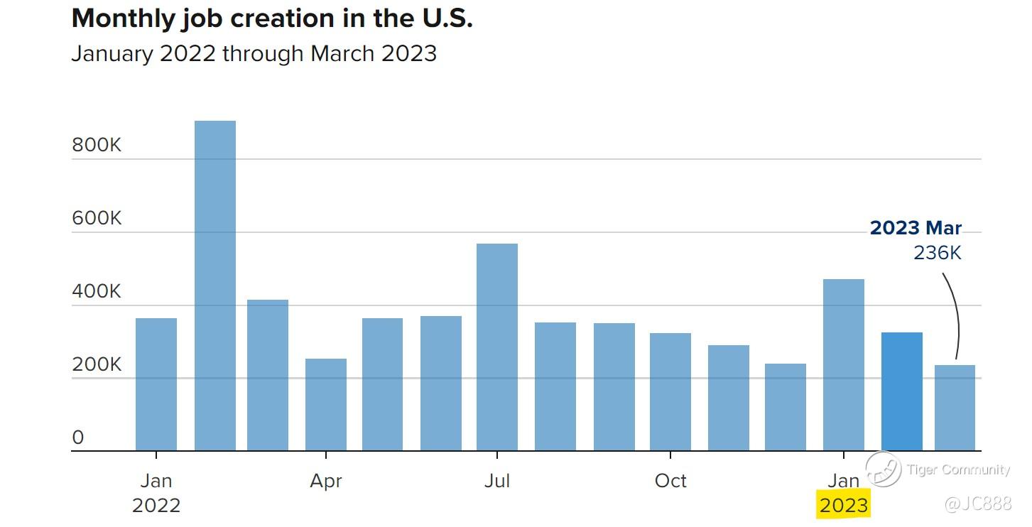 US Mar 2023 NonFarm Payroll @ 236,000 jobs- lower than expected