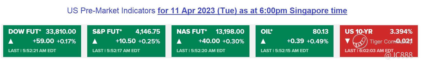 US pre-mkt indicators for 11 Apr 2023 (Tue)