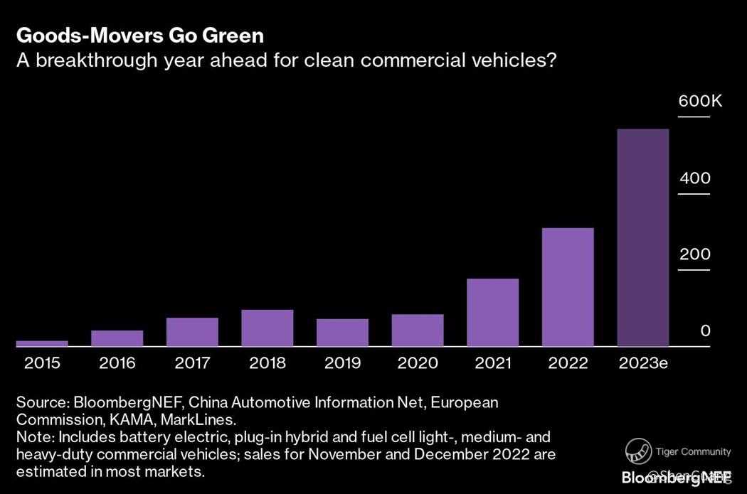 Of enormous interest are commercial vehicles, which tend to be used much more intensively than passenger cars. Electric commercial vehicles are expected to show a 80% year-on-year increase to nearly 600,000.